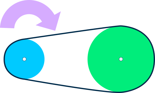 La polea motriz al girar, transmite el movimiento a través de la correa a otra polea conectada en un sistema de transmisión.