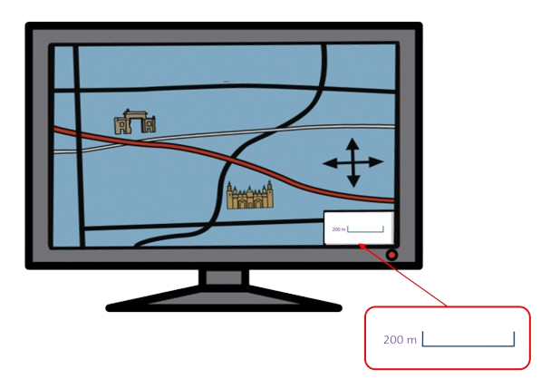 2. Mide el largo de las paredes exteriores sobre la planta del edificio que ves en la captura de pantalla hecha anteriormente. Puedes imprimirla y trabajar sobre papel o hacerlo sobre la pantalla del ordenador. Debes calcular su medida real, teniendo en cuenta la escala obtenida en la pregunta anterior.
