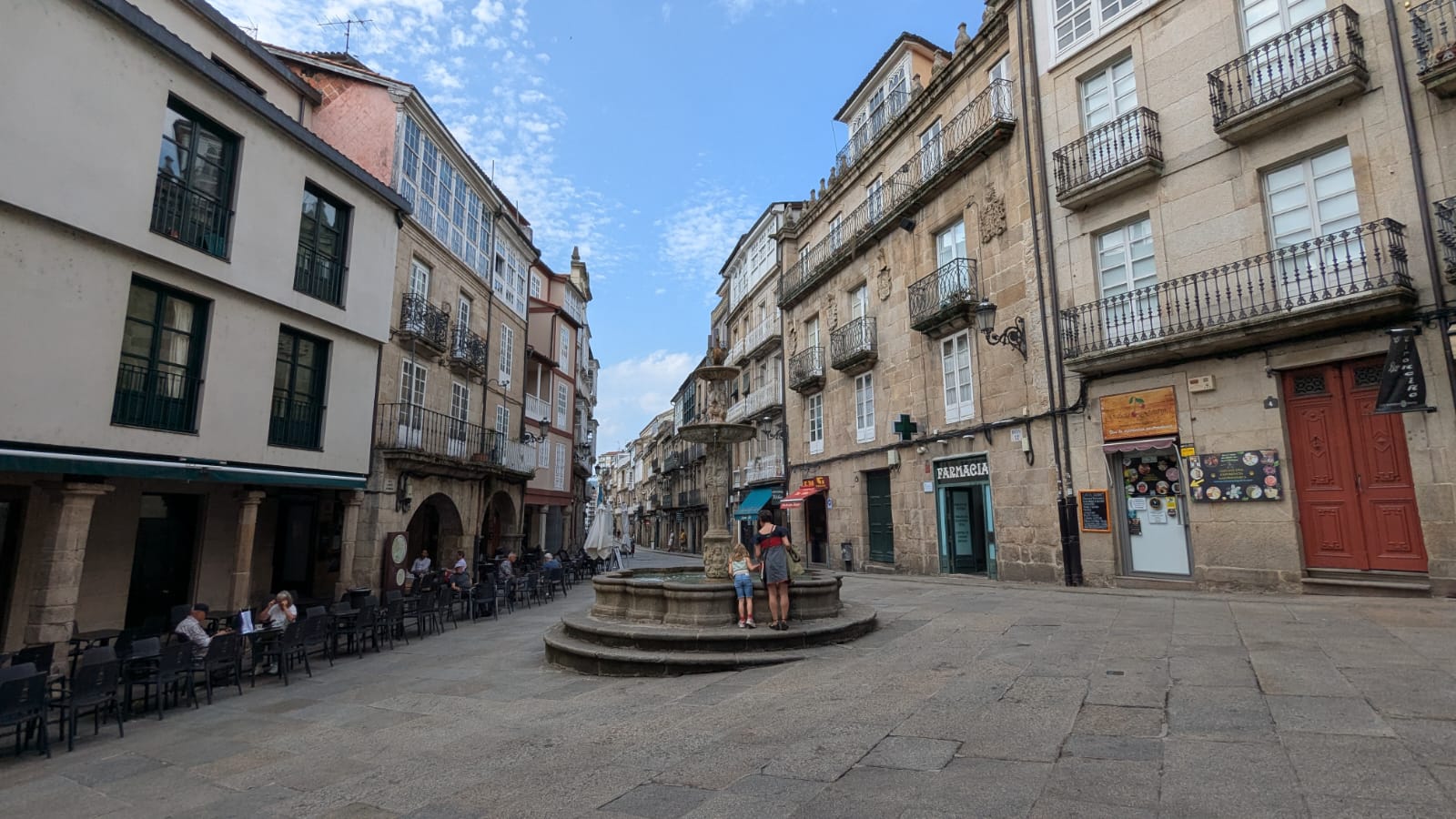 En Ourense, a cidade medieval desenvólvese ó redor da catedral e das burgas, con prazas coma a do Ferro ou a de San Martiño, e un tecido urbano onde a auga quente natural xogou un papel central tanto no urbanismo como na vida cotiá.