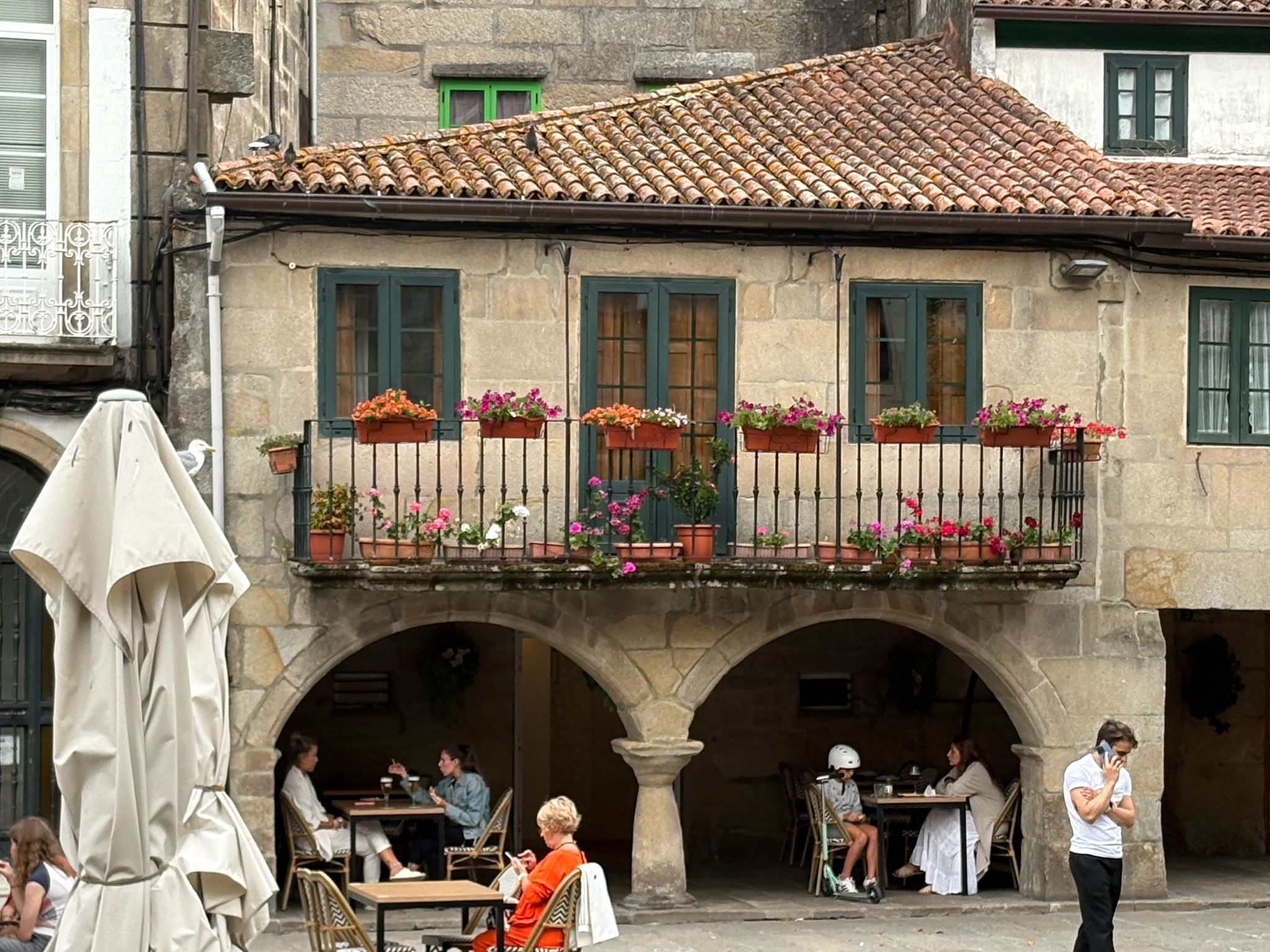 En A Coruña, a parte alta da cidade vella, na contorna da praza de María Pita e a igrexa de Santiago, conserva tamén ese espírito medieval: rúas estreitas, percorridos adaptados ó relevo e vivendas tradicionais con galerías.