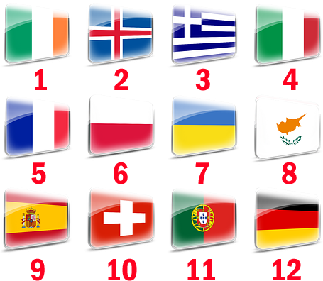 Julie a beaucoup voyagé. Connaissez vous ces drapeaux ? Retrouvez les noms des pays dans tous les sens possibles. Soulignez-les à l'aide de votre souris.