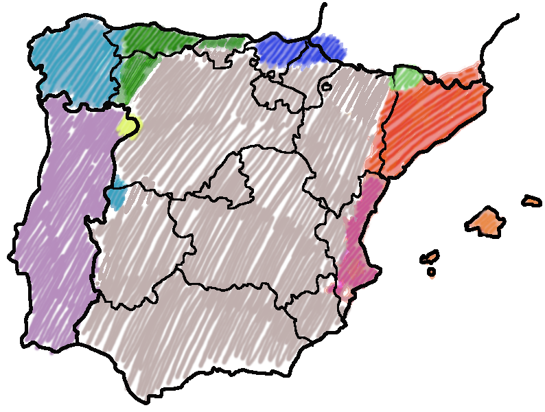 O mapa indica os territorios con lingua propia. Preme na marca de cada territorio e identifica a lingua propia desa zona.