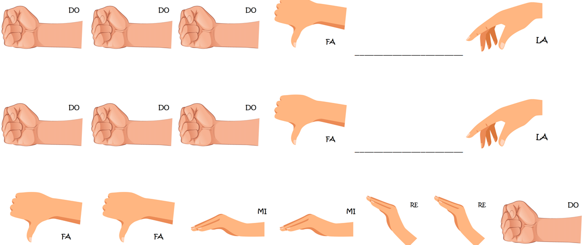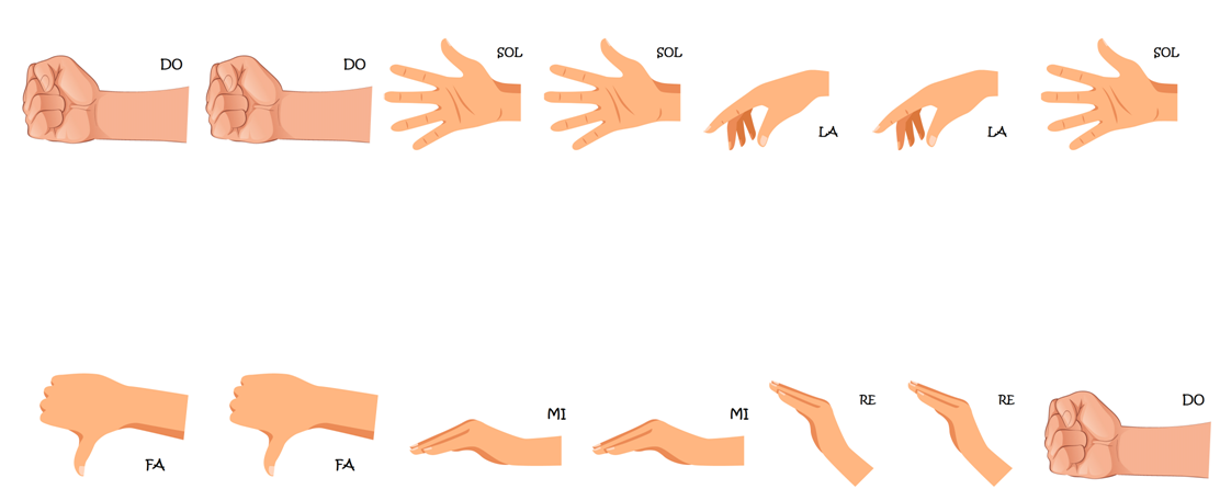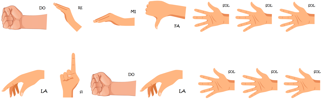 O código que empregaremos asocia un xesto concreto a cada unha das sete notas da escala musical que coñecemos . Desta maneira, existen sete xestos distintos, que combinados dunha ou doutra maneira poden orixinar melodías, podemos interpretar partituras sinxelas ou mesmo improvisar pequenas pezas vocais. No seguinte documento aparecen por orde todas as indicacións, xunto cunha pequena explicación do seu significado. Podedes descargar o documento se o precisades. Moita atención!