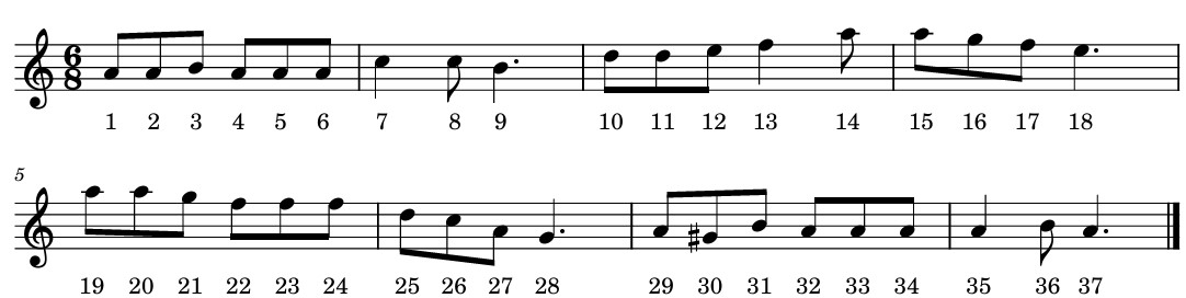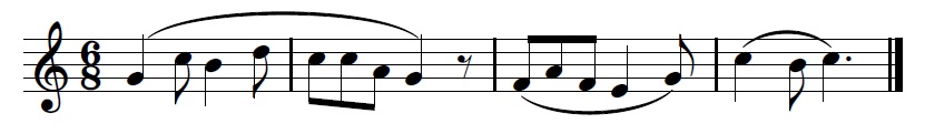 UNIT 1 QUIZ Question 1. What is in the image? Answers Option 1 a minim rest and a crotchet rest. Option 2 a crotchet rest and a quaver rest. Option 3 a semibreve rest and a quaver. Question 2. What can you see in this stave? Answers Option 1 ledger lines and bar lines. Option 2 end bar line and bar lines. Option 3 ledger lines and a minim rest. Question 3. Have a look at the stave and decide which is the corresponding time signature. Answers Option 1 6/8 Option 2 4/4 Option 3 3/4 Question 4. Which clef should we use to correctly name the notes? Answers Option 1 G-clef. Option 2 F-clef on the fourth line. Option 3 C-clef on the first line. Question 5. Choose the note sequence that corresponds to this image: Answers Option 1 F E F G A D E A Option 2 D E D A G A F D Option 3 E D E F G F A E Question 6. One of the differences between simple and compound time signatures is that ... Answers Option 1 in simple time signatures each beat in a bar is subdivided into three other beats while in compound time signatures it is divided into two Option 2 in simple time signatures each beat in a bar is subdivided into two other beats while in compound time signatures it is divided into three. Option 3 simple compound time signatures have got less notes than compound time signatures. Question 7. This image corresponds to ... Answers Option 1 Simple time signature. Option 2 Compound time signature. Option 3 Simple and compound time signature. Question 8. Which of the three sound files matches this score? Answers Option 1 audio/mpeg Option 2 audio/mpeg Option 3 audio/mpeg Question 9. What melody does this fragment belong to? audio/mpeg Answers Option 1 Tarantella Napoletana. Option 2 Scarborough Fair. Option 3 Te Aroha. Question 10. Listen to the sound file and check with the score. Which of the options represents the six incorrect notes? audio/mpeg Answers Option 1 2-8-15-24-28-36 Option 2 4-5-6-20-22-34 Option 3 10-11-14-15-20-21 Enable JavaScript