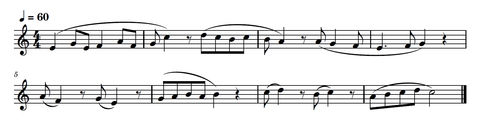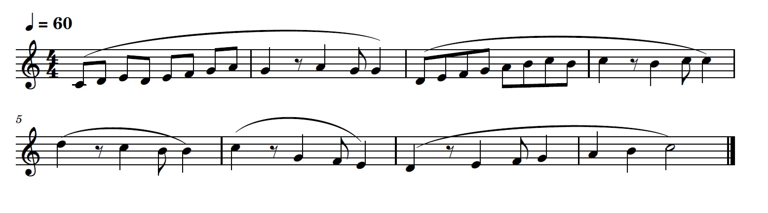 Here, there are two exercises in a 4/4 time signature and one exercise in a 2/4 time signature. Be careful, as the 2/4 exercise uses the F-clef. Remember the 4/4 and 2/4 hand movement to measure the bars. As in the rhythmic reading 1 exercises, first study the scores and practise hand movements to represent the corresponding time signature. Then name the notes aloud while keeping the beat with your hand. It doesn't matter if you start slowly, the idea is that speed is increased with practice. |