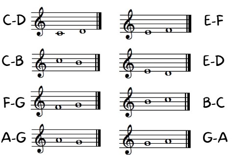 Listen to the intervals and drag each card to its container.