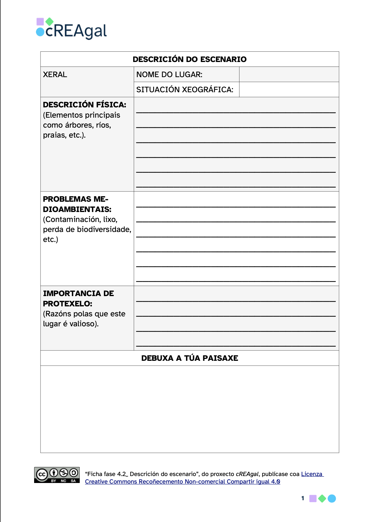 As personaxes: daredes vida a protagonistas únicos, describindo tanto como son por fóra como por dentro: a súa aparencia, carácter e o seu papel na historia, recordade empregar os adxectivos estudados neste tema. O escenario: escollede un lugar especial da vosa contorna (praia, bosque, vila…) e recreádeo cunha descrición rica en detalles e cunha reflexión sobre os retos ambientais que enfronta. A historia e os diálogos: contádenos unha pequena aventura onde as personaxes transmitan unha mensaxe clara e positiva a través dos seus diálogos e accións. A vosa misión será presentar este proxecto en formato papel, empregando fichas que vos axudarán a organizar as vosas ideas. E se o tempo nolo permite, como reto adicional, poderemos transformar todo o que imaxinastes nun videoxogo real en Scratch!