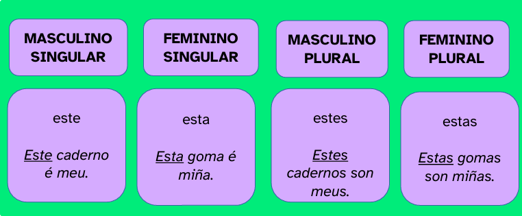 Distinguimos a 3ª persoa do singular (el ou ela) e a 3ª persoa do plural (eles ou elas).