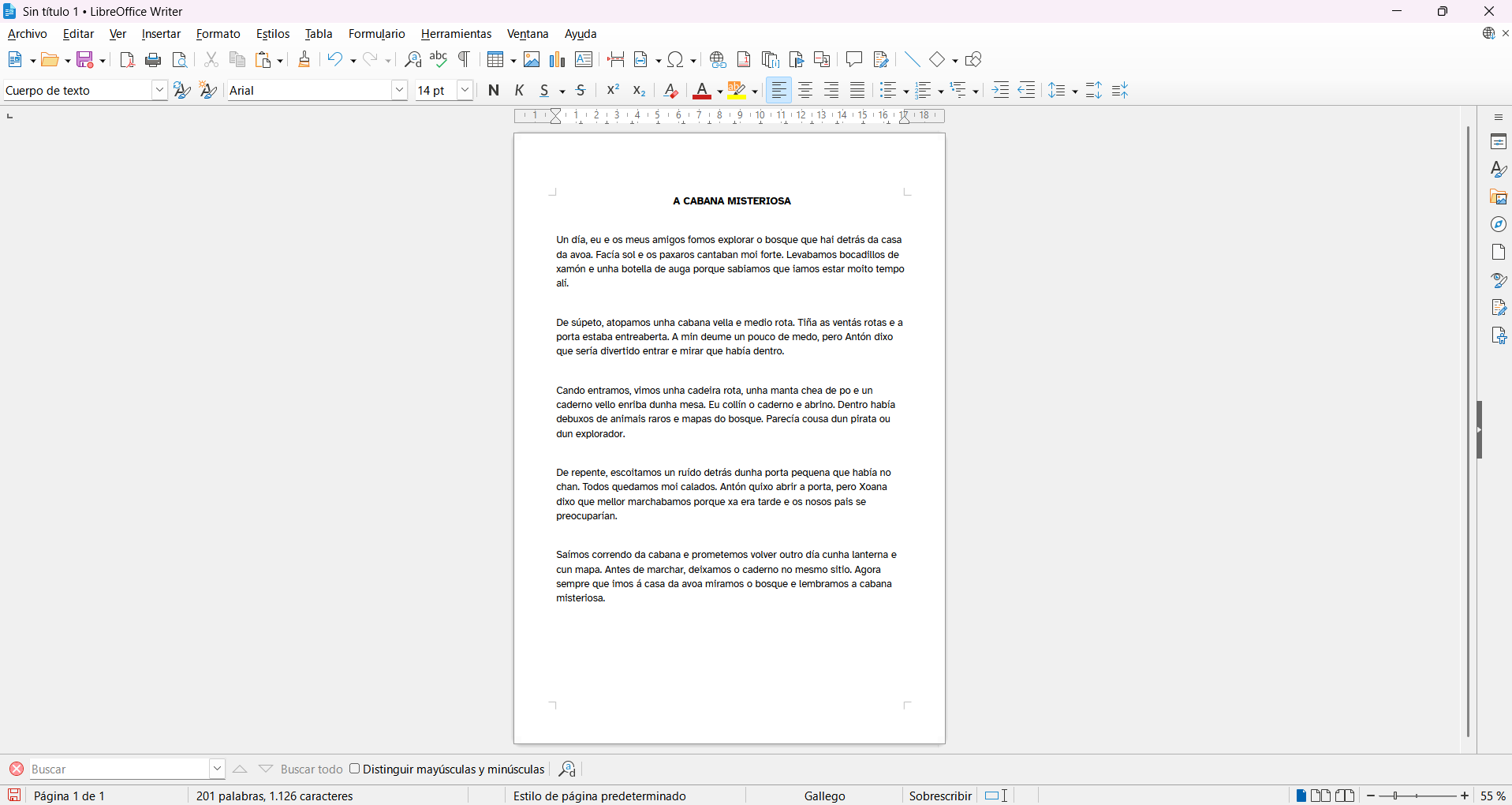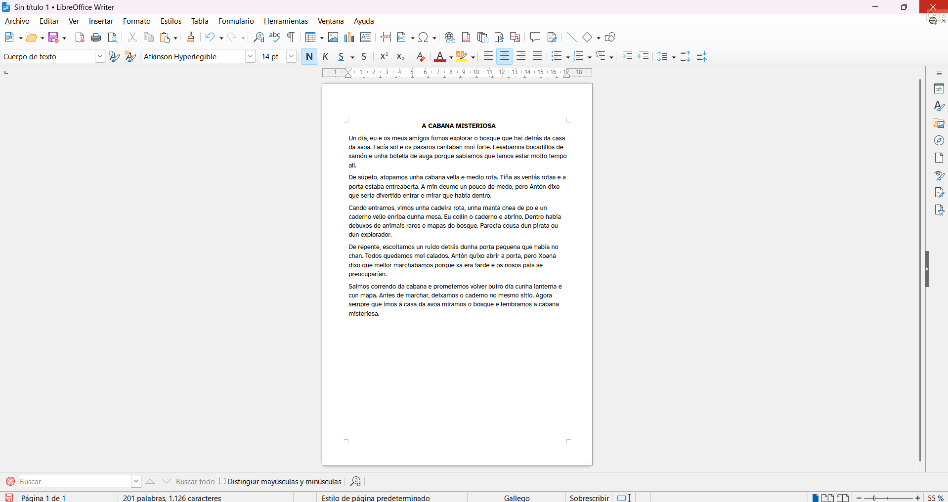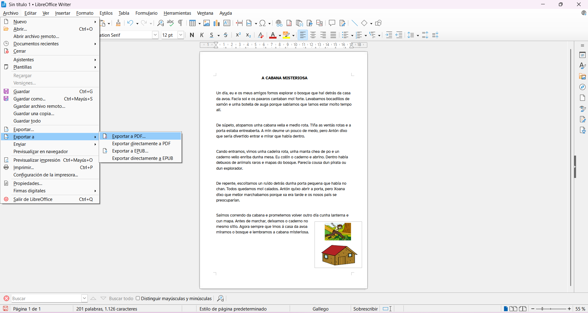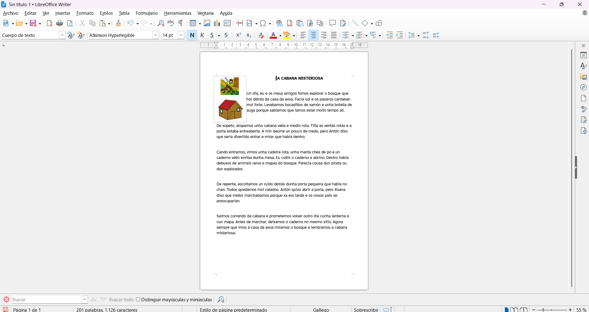 REA da materia de Lingua Galega e Literatura de 6º de EP. Ten a súa correspondencia coa unidade didáctica 6 facilitada en PROENS pola Consellería de Educación, Ciencia, Universidades e Formación Profesional. Xunta de Galicia. Nesta situación de aprendizaxe o alumnado deberá elaborar os seus propios textos escritos para describir actividades levadas a cabo dentro ou fóra do centro. Dende o clima de convivencia da súa aula, pasando polo correcto uso dos equipamentos EDIXGAL ata dar a coñecer as actividades realizadas. |