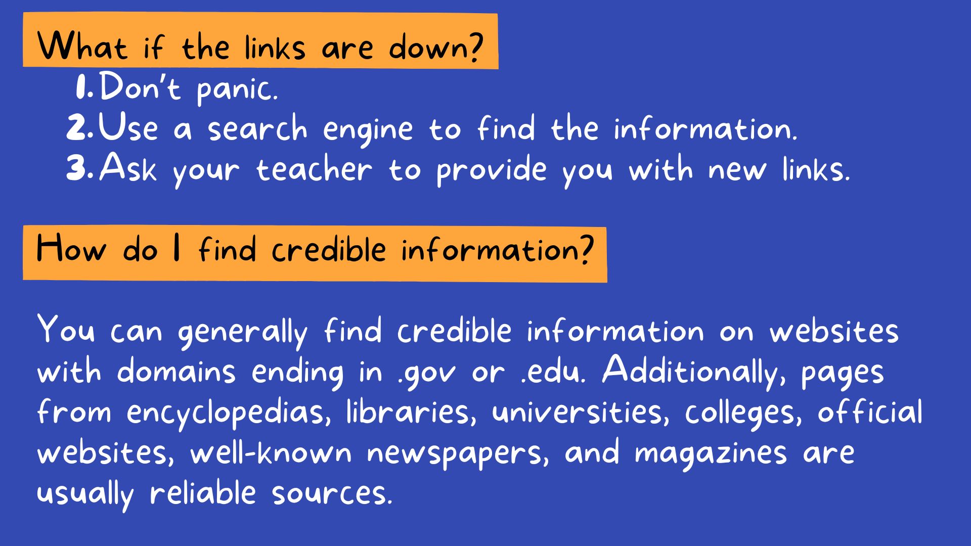 c) Sometimes links may disappear or become unavailable, but that shouldn't prevent you from completing your work. Here are some instructions on how to proceed if that happens.
