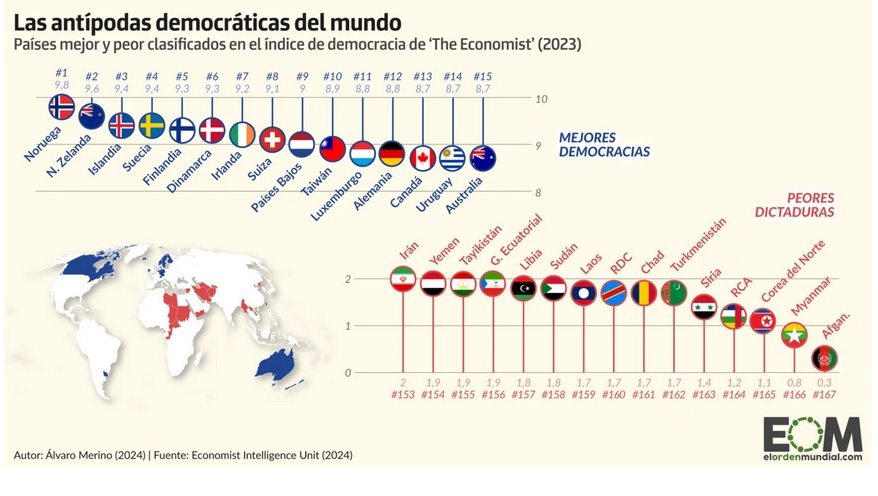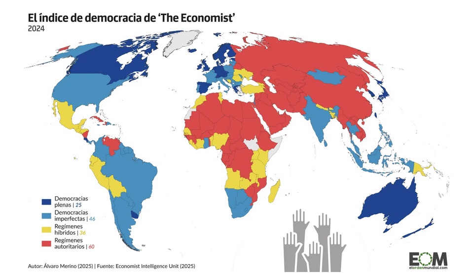 Tras dos guerras mundiales, la humanidad debería haber aprendido algo. ¿Qué os dice el mapa sobre el estado de salud de las democracias en la actualidad?