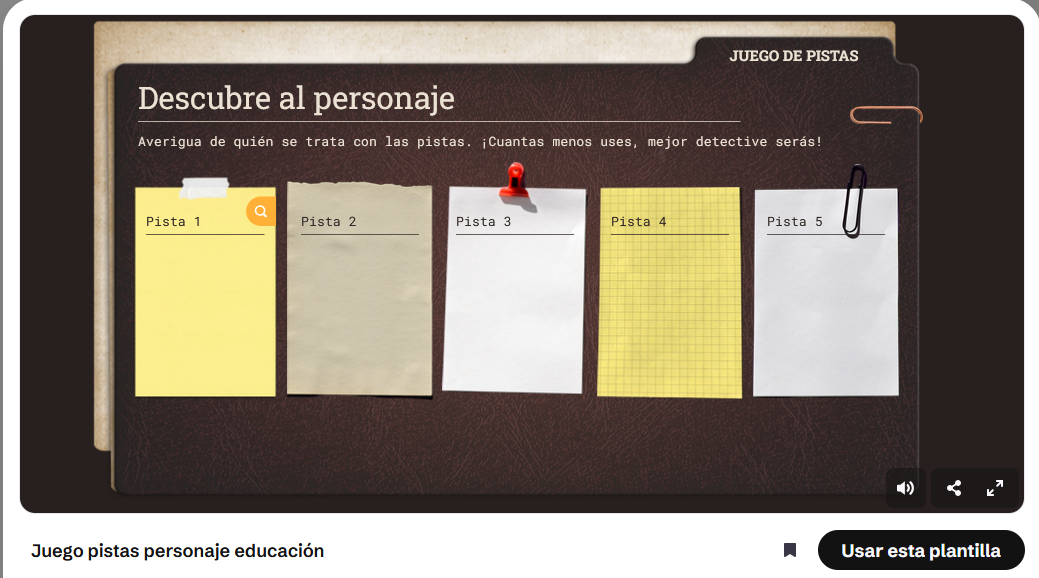- Busca la plantilla Descubre al personaje en Juegos.